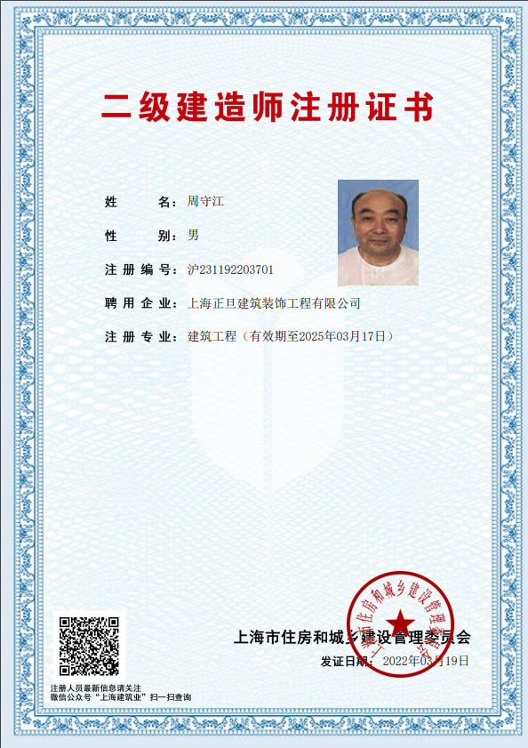 二級建造師注冊證書